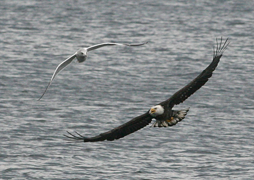 Bald Eagle Hunting Ducks On White Lake RETURN TO GALLERY PREVIOUS PAGE